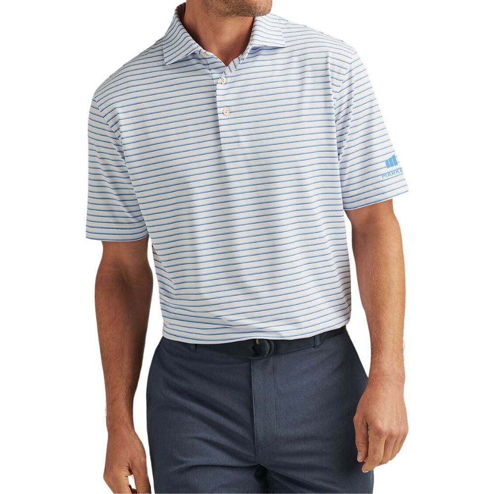 Peter Millar Men's White/Cottage Blue Dunnes Stripe Polo